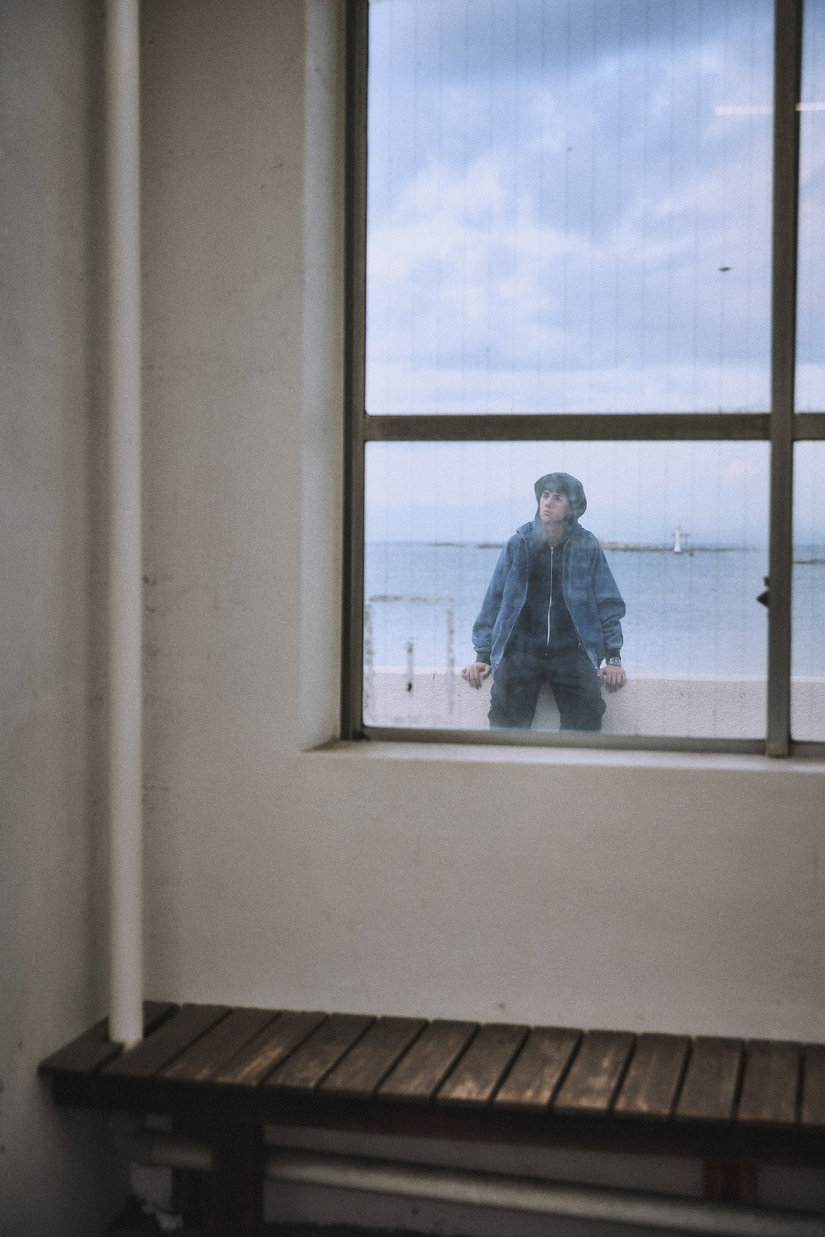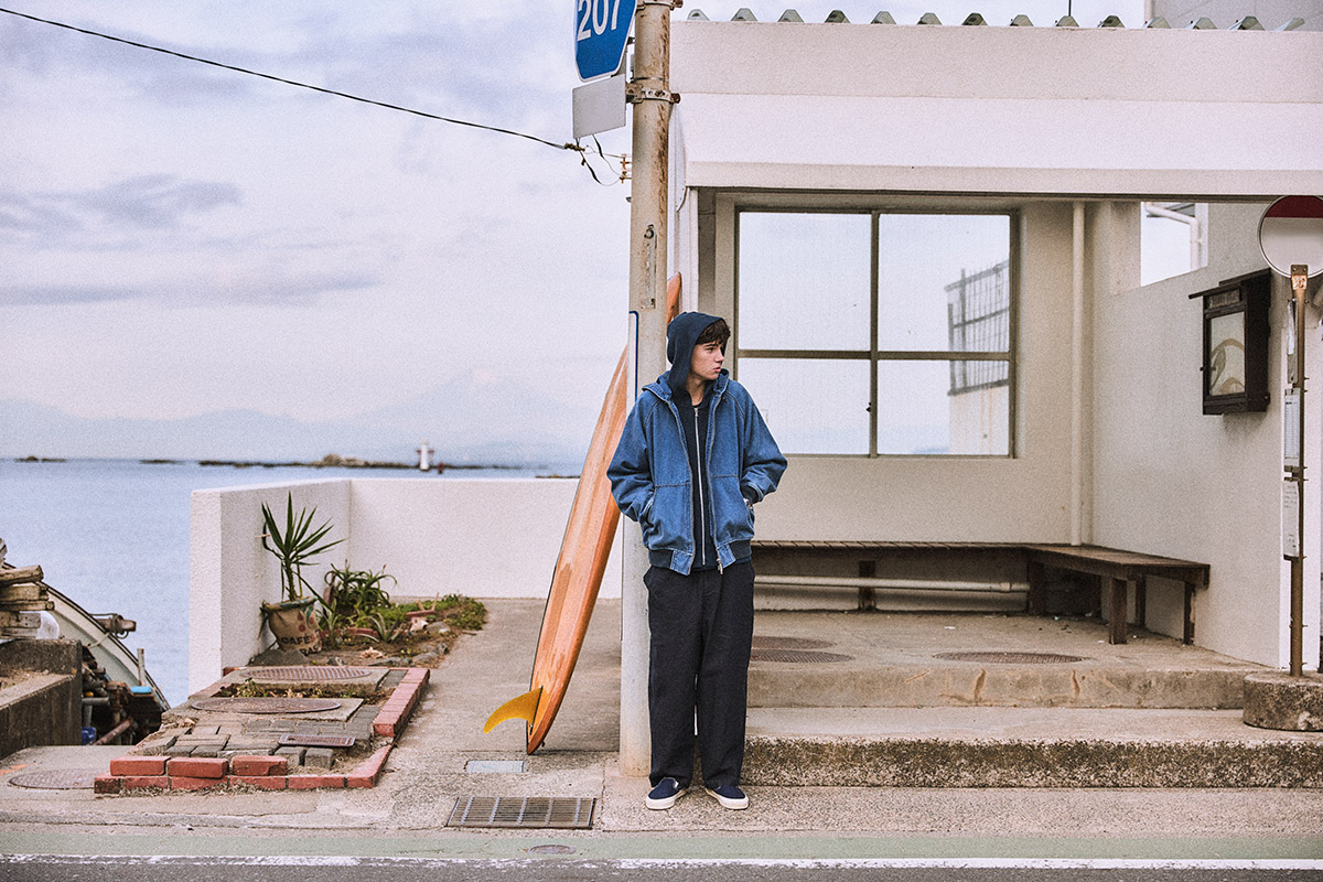 インディゴ染めのダックフィールドジャケット¥46,200(ザ・ノース・フェイス パープルレーベル/ナナミカ マウンテン ☎︎03・6416・3012) サーマル地のジップアップフーディ¥35,200 COOLMAX地のポケットTシャツ¥13,200(ともにナナミカ/ナナミカ 代官山 ☎︎03・5728・6550) リネンのイージーパンツ¥77,550(ポータークラシック/ポータークラシック 銀座 ☎︎03・3571・0099) その他は私物