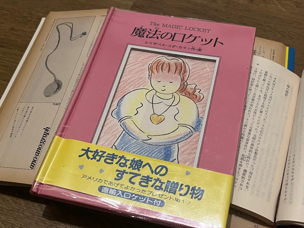 80年代のとある本に「彼氏のロケットに元カノの写真が入っていた」と書いていて、ロケットペンダントに興味が湧いていたここ最近。別の日に古本屋に行くと今度は『魔法のロケット』という絵本を発見し、さらにロケットの存在が気になり始めてしまった(その本の帯に“直輸入ロケット付”と書いていたが、残念ながら付属しておらず)。そんな最中、また違う文庫本を呼んでいると、「ロケット式の時計」というワードが出てきて、つまり懐中時計的なもののことなのだろうと推測したが、どうも具現化できず、いよいよロケットについて少し調べることにしたのであります。