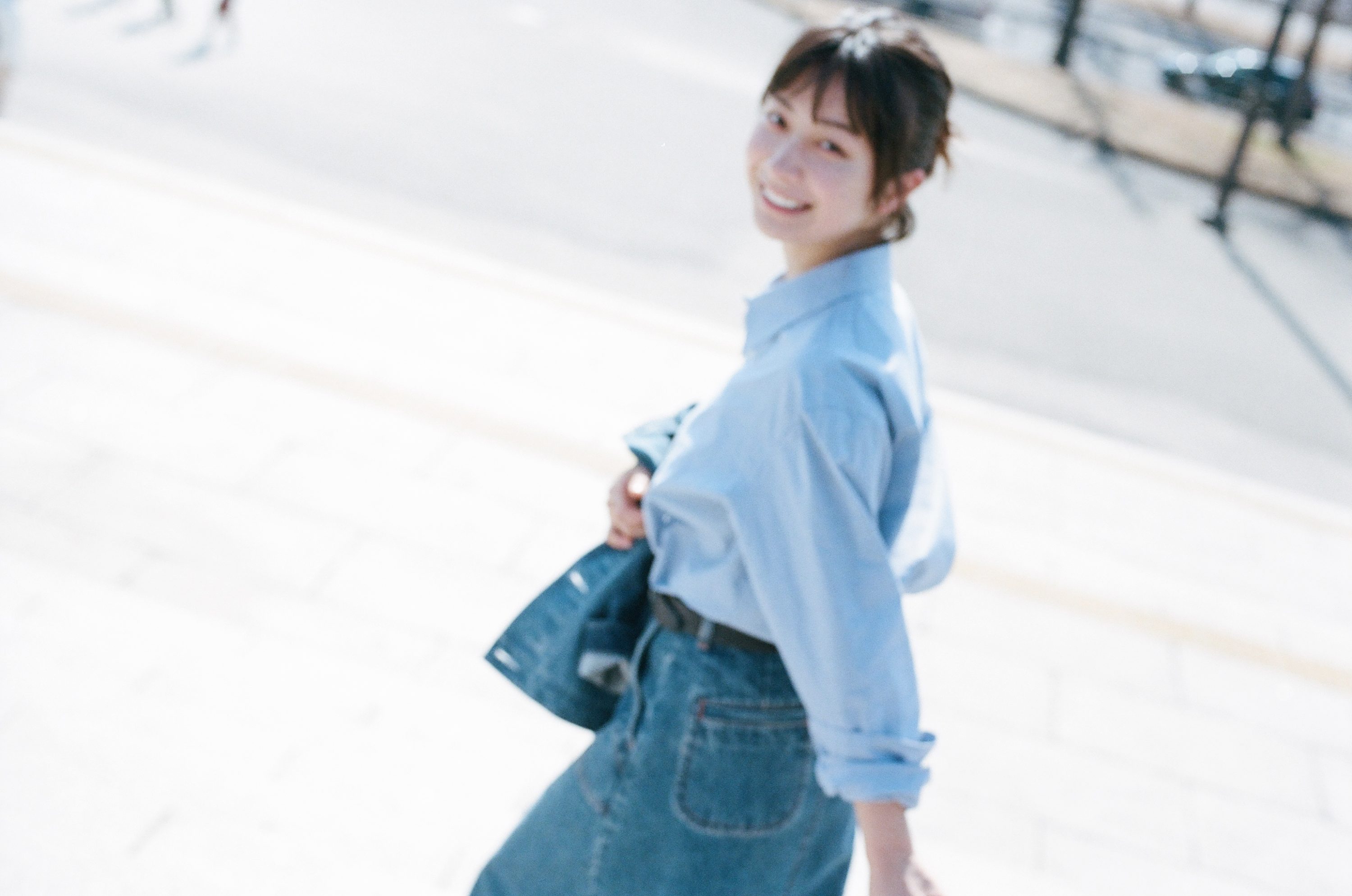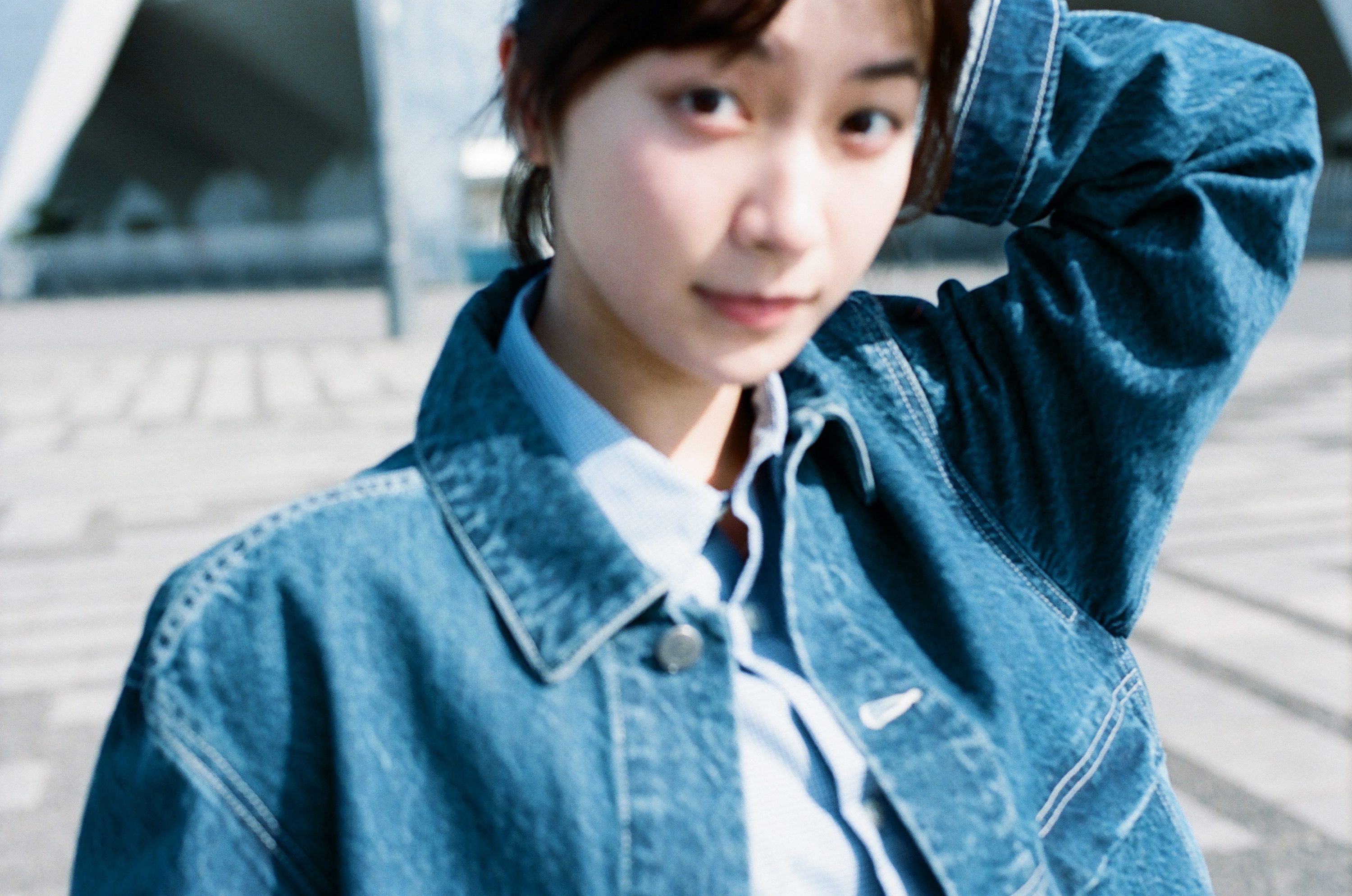 デニムブルゾン¥49,500、デニムスカート¥31,900(ともにアー・ペー・セー/アー・ペー・セー カスタマーサービス☎0120·500·990) シャツ¥24,200(マイ/ワンエルディーケー アパートメンツ☎03·5728·7140) 右手人さし指のヴィンテージのリング¥36,300(スタジオラボ404ドットコム info@studiolab404.com) 左手人さし指のリング¥52,700(トムウッド/トムウッド 青山店☎03·6447·5528) ベルト¥49,500(ジョン スメドレー/リーミルズ&カンパニー☎03·6277·5715)バッグ¥18,150(ラウニカ/ビューティー&ユース ユナイテッドアローズ 丸の内店☎03·6212·1500) ソックス¥3,190(パンセレラ/真下商事☎03・6412・7081) スニーカー¥14,850(リプロダクション オブ ファウンド/アイファウンド☎03・6434・7418)