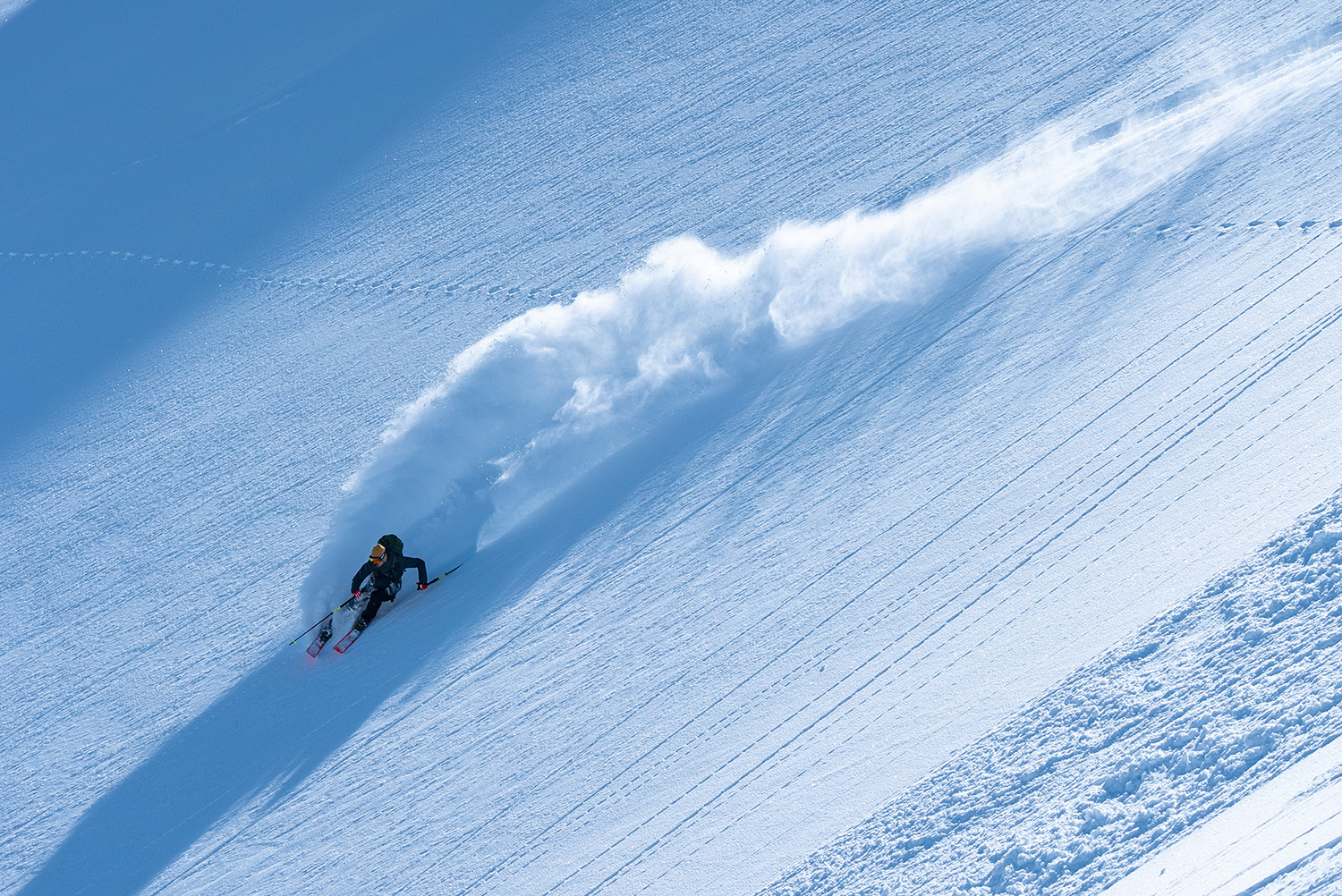春に滑ったことがある方には分かるはず、ターンを刻むたびに雪がシャラシャラと鳴り、スイーっと板が走っていくのだ。