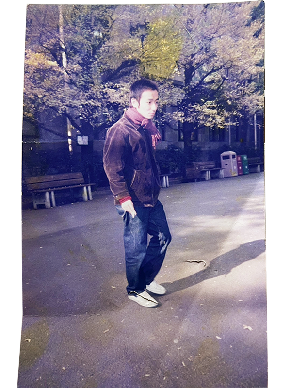 写真は早稲田大学のキャンパス内、「自然な写真を撮るふりをしつつ完全停止している」という姿が面白いと思って撮ったもの。当時はお笑いサークルWAGEで小島よしおさんや槙尾ユウスケさんと活動をしながら、事務所を必死に探していた。「お笑いは勉強以外で初めて『才能あるかもな』と思えたことだったんですよ。だからオーディションを受けに行けば『お前みたいな奴を待ってた』みたいになると期待してたのに、全然そうならなかった。キャンプサークルにも入っていて仲良かったんですけど、みんな普通にいい会社に就職する人たちで、芸人になりたい俺とは違うなあと思ったり。焦ってましたね。プロになりたいし、叶わないんだったら意味ないと思ってました」