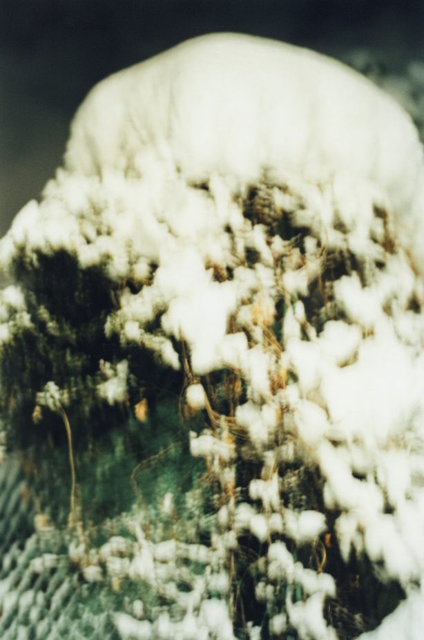 そして、『RETINAGAZER』に非常にブレた写真も数多くあります。一般的には、ブレた写真を撮ったら失敗と思われがちですが、塩田は明らにそう考えていないです。意図的にブレています。この植物の写真を単発で取り上げると、ただの変な写真として見えるかもしれません。ただ、彼の主題であるライブや音楽家と一緒に並べてみると、そのブレの意味がガラッと変わります。つまり、音楽家や音の機材そのものが見えなくても、「バイブレーション」、すなわち「振動」という概念が力強く伝わってくるのです。この振動は写真家の身体から我々、写真を見るの身体側まで伝達されているのではないか、と思います。そう考えると、我々はこの写真から何かを「聴いている」ような経験もしているかもしれません。