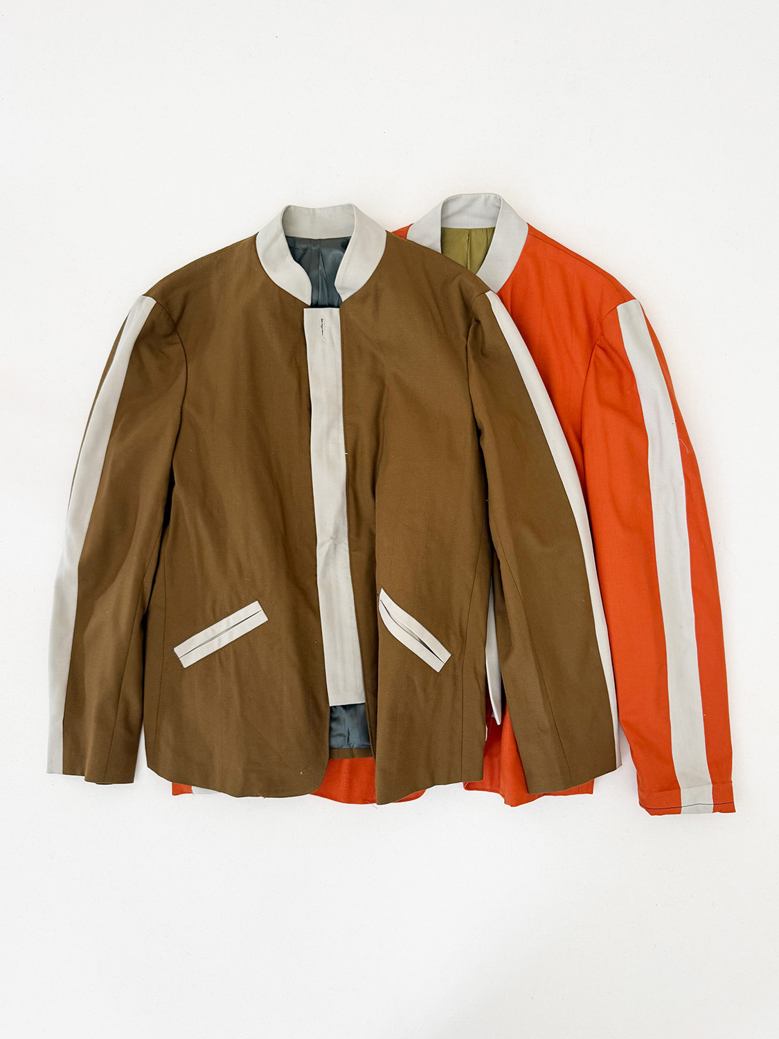 2着のうちの1着の袖口だけ、青いステッチで雑に袖丈が延ばされていました。
