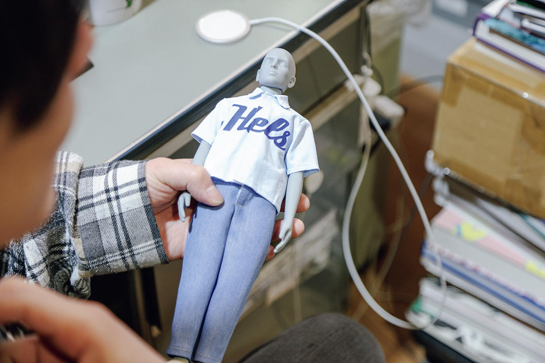 「オタク的なサブカルチャーは通らずに来たし、特別フィギュアが好きなわけでもないんですよ。自分でも考えがまとまっていない部分があるんですけど、目の前に服があると、着心地や素材、カッコいいのか悪いのか、考えることが多くて自分事になりますよね。でもフィギュアのグッズだけだと思えば、ライトに服が着られると思って。だからグッズっぽいブランドにしたいと思ってるんです」