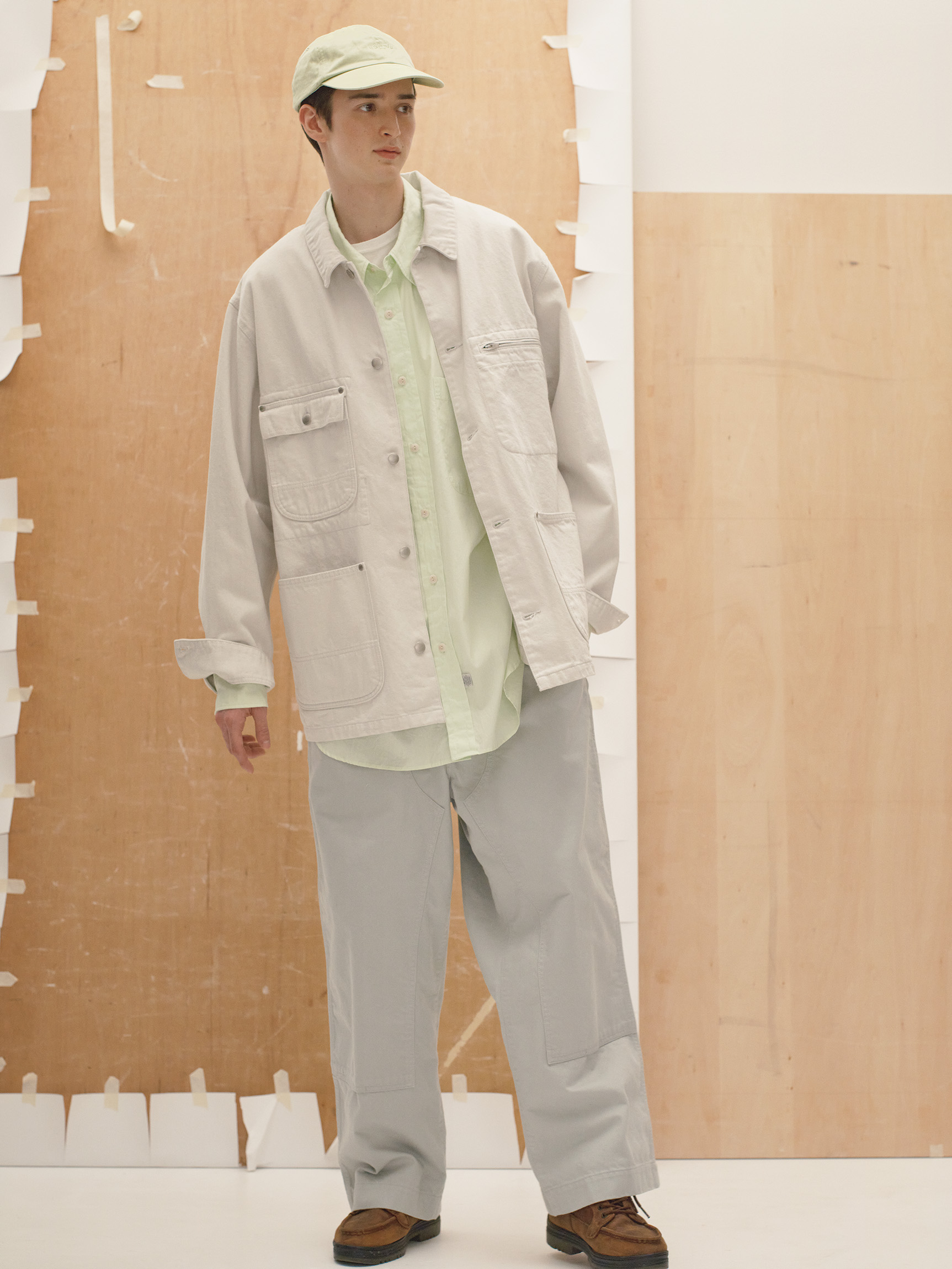 キャップ¥16,500(バウルズ) オーバーサイズのミリタリーシャツ¥44,000(マービンポンティアックシャツメイカーズ/オーバーリバー info@overriver.com)コットンドリルのダブルニーパンツ¥33,000(フォル/ジャーナルスタンダード渋谷スクランブルスクエア店☎03·6434·1097) シューズ「ヘリテージ GTX モックトゥ ミッド」¥30,800(ティンバーランド/VFジャパン☎0120·558·647)