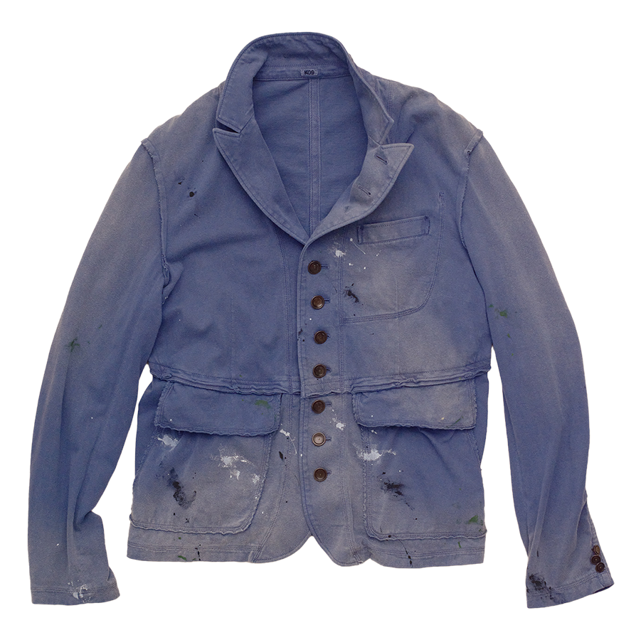 思いもよらないものづくりが魅力のブランド。染色後にフェードとペンキの加工を施すことで、ヴィンテージ感満載。¥85,800(コッキデザイン事務所 eye-khoki.com)
