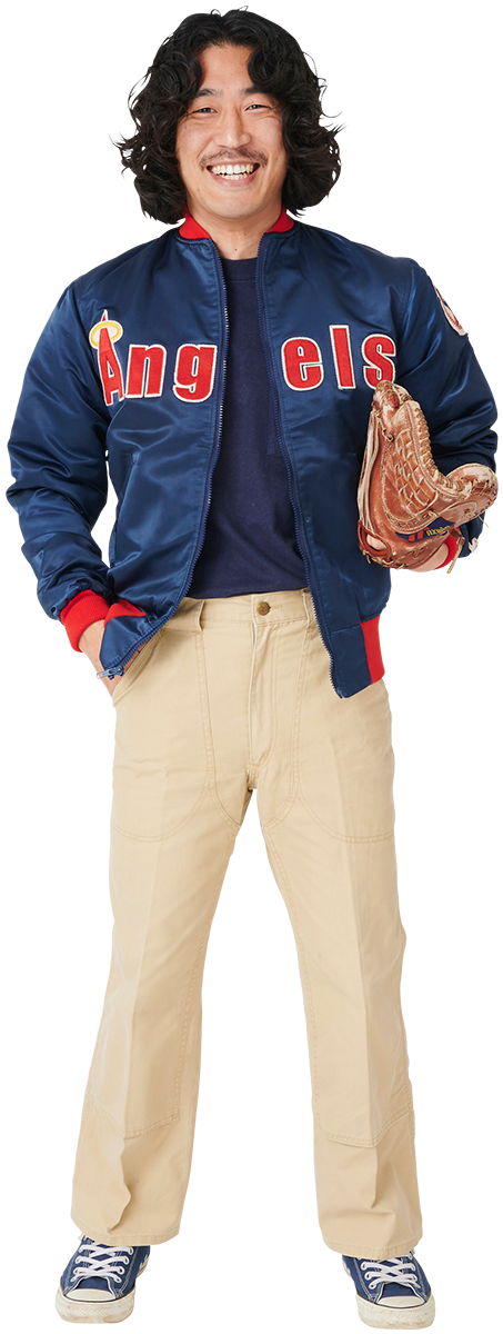 とろぴかる・まつむら|1988年、兵庫県生まれ。編集ライター。サーフィン専門誌の編集者を経てフリーランスに。サーフィンを始めたときから約20年間、当時のサーフボードで波に乗り続けている。昭和の西海岸ブーム(ワスレチック)期にフォーカスした私設ミュージアム「さんかくなみ」を二子新地で営んでいたが、2025年7月に閉館。ジーンズ&スポーツを掲げるブランド〈CRT〉のディレクターでもあり、著書に『ボクのニッポンサーフィンサウンド』がある。筆者が着ている大リーグジャンパーも、当時めちゃくちゃ流行したユニフォームもの!