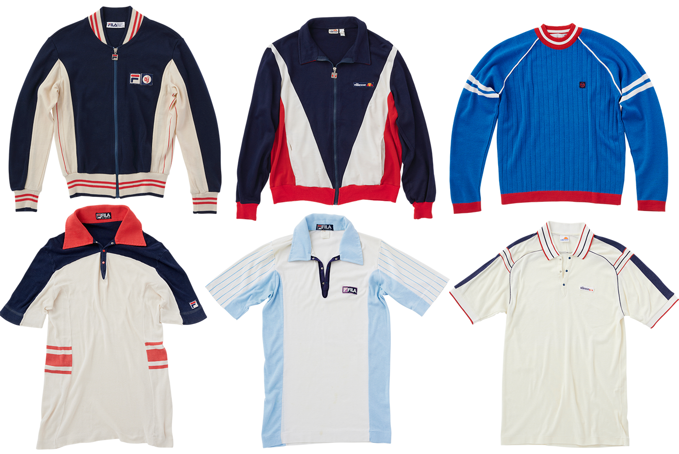中上_〈エレッセ〉のジャージ。どれもカラーデザインが秀逸。街で着たくなるわけです。