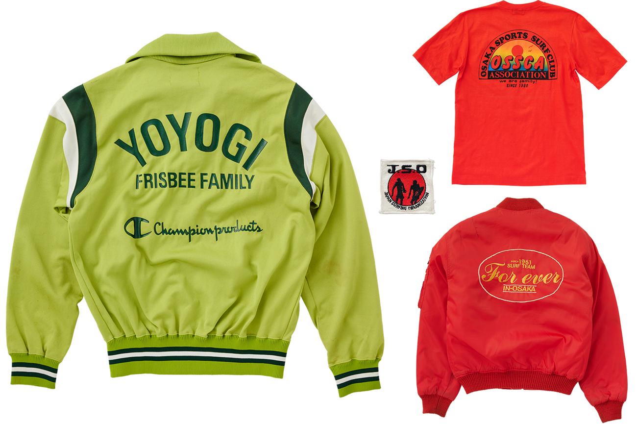 その点、ワスレチック期に突入してからのチームウェアは多種多様。筆者が所有する当時のものを見ると、代々木公園を拠点にした日本最古のフリスビーチーム「代々木フリスビーファミリー」は緑の〈チャンピオン〉のジャージを用いているし、インディーな地方のサーフチームでさえ赤のMA-1に刺繍を施している。