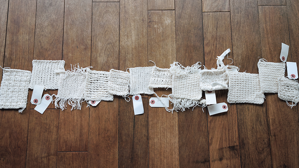 そんな言葉のとおり、依田さんは、糸の個性がありありと伝わってくるような編み地や加工の選定に時間をかける。