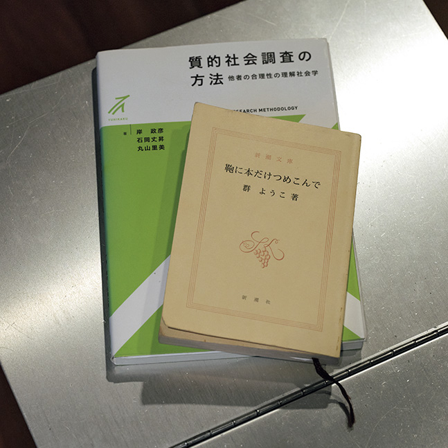 小説家・群ようこのエッセイ『鞄に本だけつめこんで』と3人の社会学者による共著『質的社会調査の方法』は依田さんが何度も読み込んだ本。書き手や、その学問が積み上げてきた社会への「態度」を読書を通じ血肉にしていく。