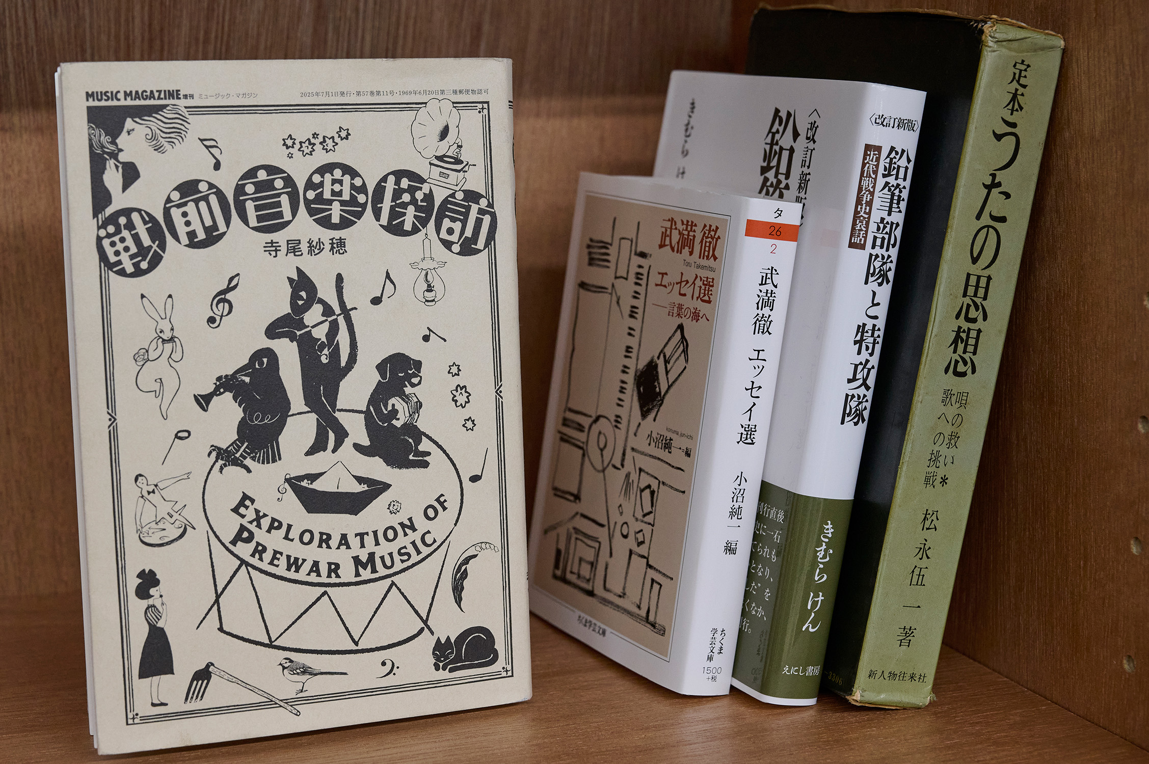 とはいえ、戦前の歌にはかなりマイナーなものや、作者不明のもの、まだ発見されていないものまで多数ある。寺尾さんはそれらについて時間をかけながら、YouTubeのSP音源や国会図書館のデジタル資料、ライブで訪れた土地の資料館などで調査を重ねる。書名に掲げられた「探訪」とは寺尾さん自身の学習の道程なのだ。今回、副読書に挙げた松永伍一『定本 うたの思想』、『武満徹 エッセイ選―言葉の海へ』の2冊は論考集とエッセイ集。体裁は違っても、いずれも音楽を話題の中心に様々な著者の思考が張り巡らされ、「探訪」感が味わえるはず。