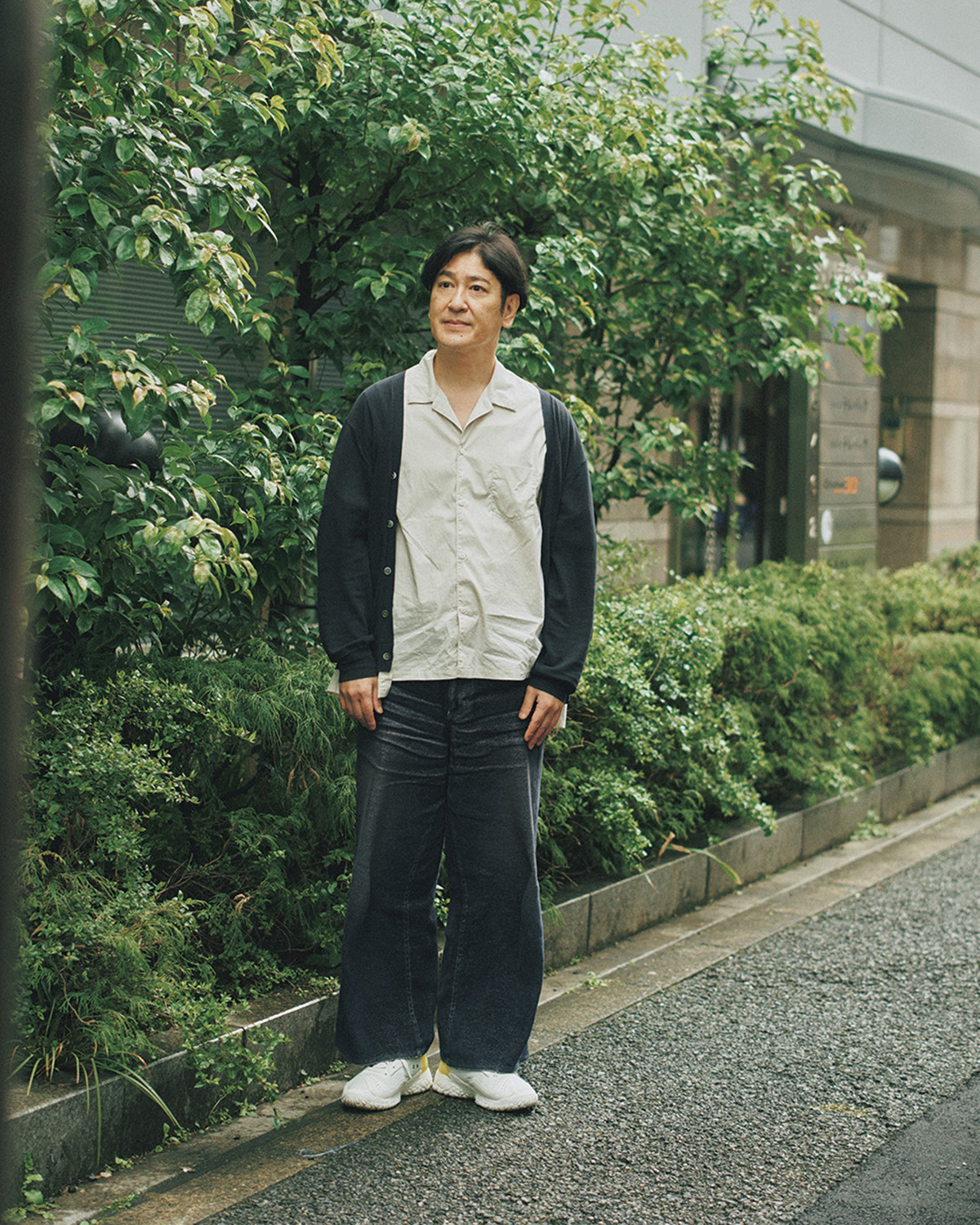 雨が降る3月の寒い日、吉本興業旧東京支社付近で撮影。当時、東京支社はオフィスビルのワンフロアだった。「1階の駐車場とか近くの路地で立ってネタ合わせしてましたねえ」。取材では遠藤さんとのエピソードがざくざく。中学最後の試合はキャッチャーの田中さんの送球ミスが敗因に。今でもこう言われるそう。「遠藤さんが言うにはですよ。『みんな落ち込んで歩いてんのに、田中は帰りしな普通にたこ焼き食ってた』。覚えてないんですよ。確かに試合中からお腹すいてたなみたいな記憶は微かにあるんですけど。『いまだに信じられない』って」