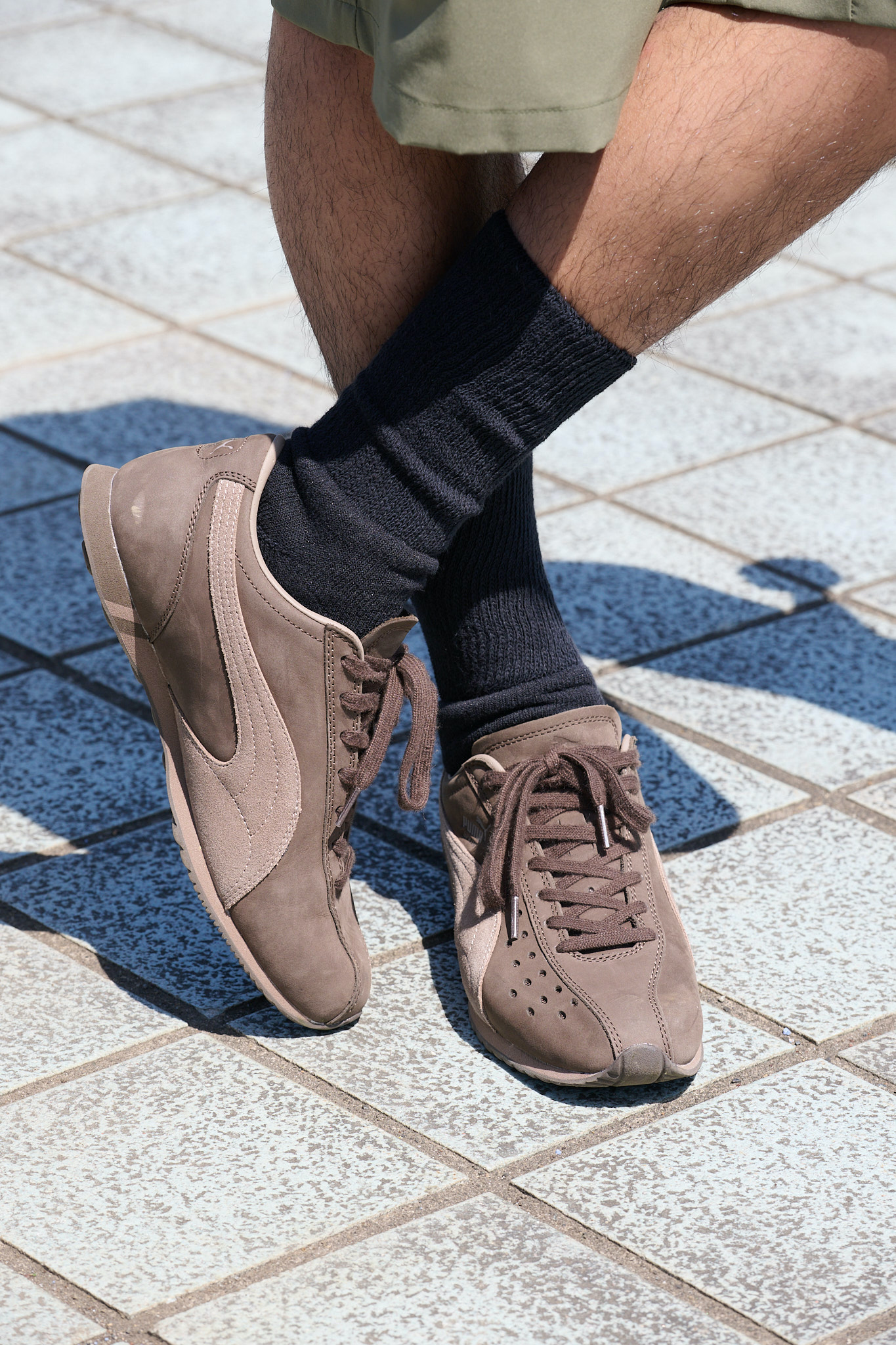1970年代のサイクリングシューズ「OLYMPIA SPRINT」をルーツに持ち、2000年代にはランニングシューズとして進化した名作「SPRINT」。薄底・低重心のフォルムや、フラットなソール構造はそのままに、今作ではアッパーに上質なヌバックを採用。スポーツ由来のシャープなデザインの中に、都会的な奥行きも感じられる。スニーカー「スプリント ヌバック」¥16,500(すべてプーマ/プーマ お客様サービス☎ 0120·125·150)