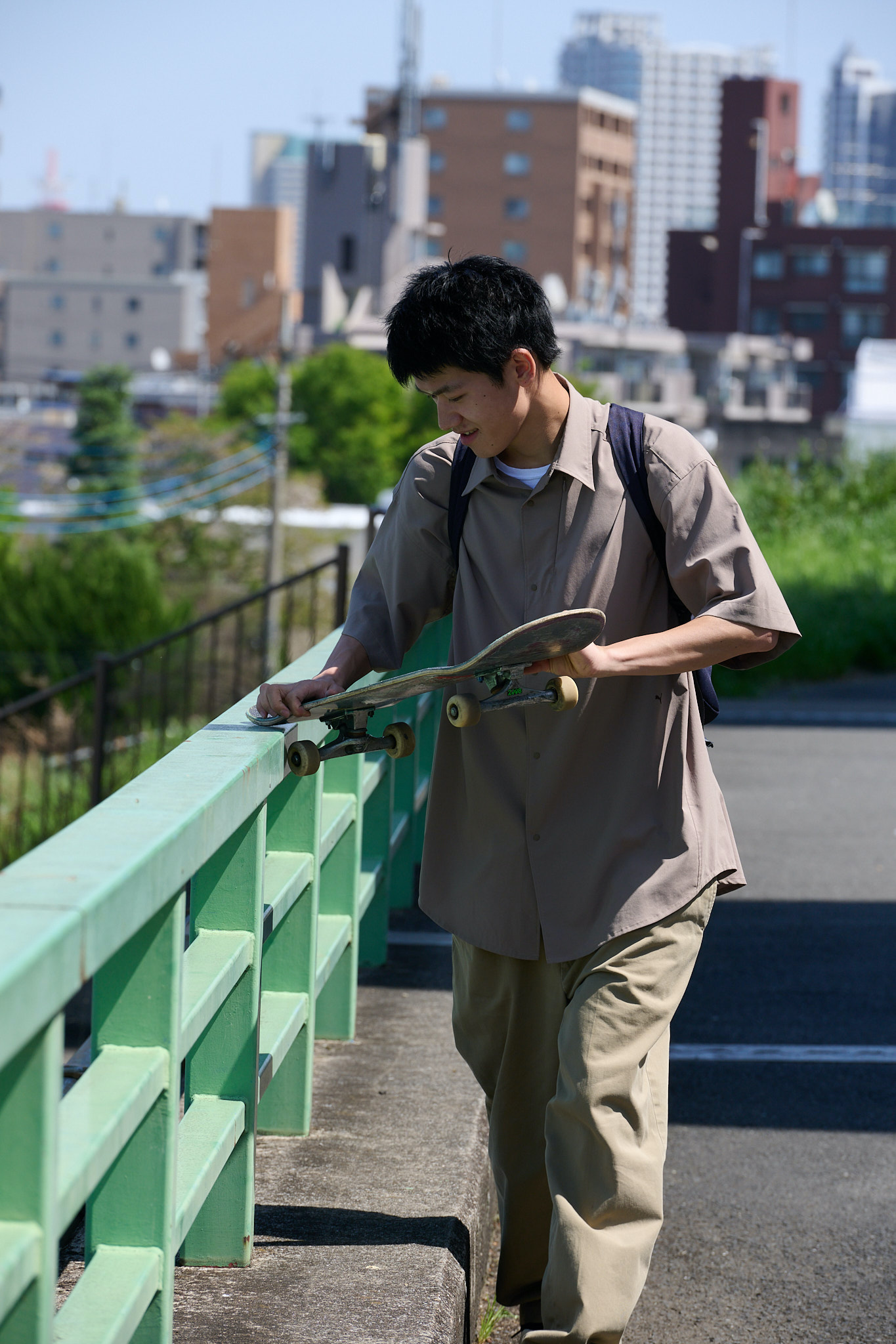 しかも、この素材も優秀。見た目はコットンライクなのに、肌に触れる面にはポリエステルを使っているから、するんと滑らかで、汗をかいてもベタつかない。前傾姿勢でも腕まわりがつっぱらない設計だから、咄嗟にビデオカメラを構えるときもノンストレス。自転車に乗る日にも、かなり頼りになりそうだ。