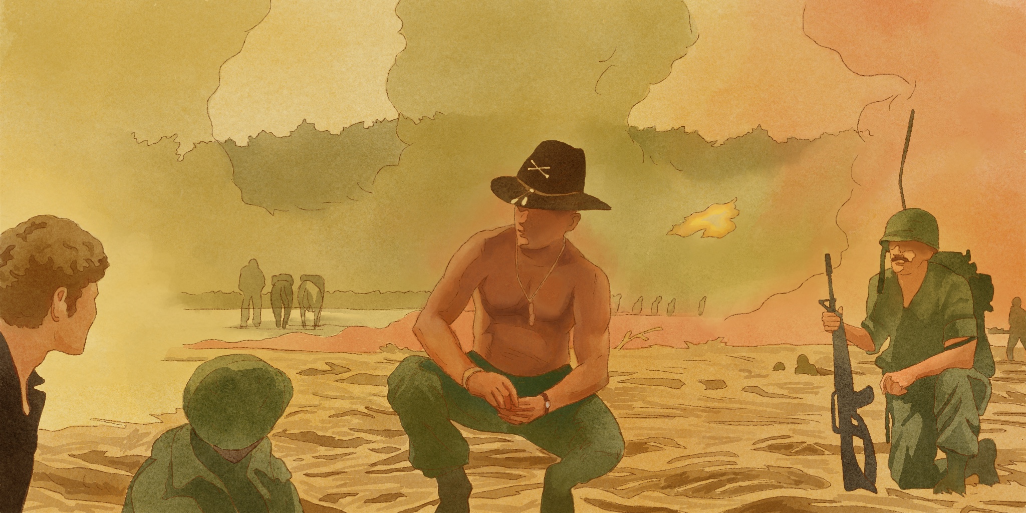 その1人が、序盤に登場するカウボーイみたいな出で立ちのキルゴア中佐。特に印象に残るのは、彼が「水をくれ」って懇願する今にも死にそうなベトナム兵を目にするシーンです。部下がその要求を拒否していると、キルゴアはめちゃくちゃ怒るんですよ。「水くらいくれてやれ!」って。だけど、「サーファーの米兵が来ましたよ」って報告が入った瞬間、渡そうとしていた水筒をポイっと投げ捨ててしまう(笑)。そして、彼は激しい爆撃が続く海でサーファーの米兵に波乗りをさせるんですよ。そういう狂気とか、不条理の描き方がとてもリアルで。例えば、別に戦地じゃなくても、極限的な状況に置かれているのになぜか別のことを考えてたり、正義のようでただの気まぐれであったりとか、そういう人間のメチャクチャさというのは普遍的にあると思うんですよ。その人間をめぐる変なリアリティがいちいち面白いんです。
