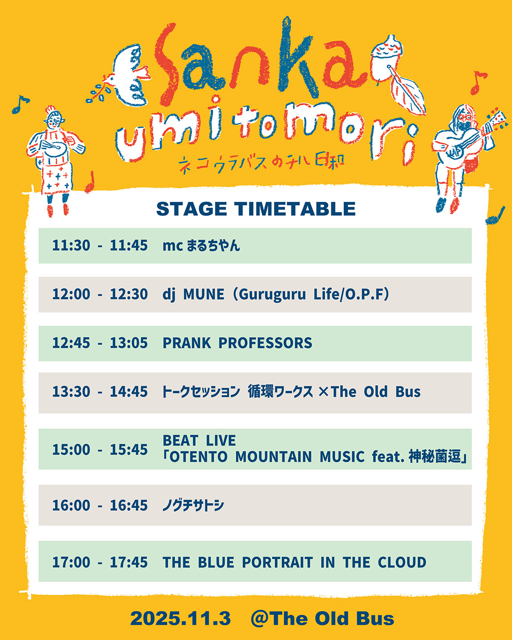 アクセス:「木負農協」「伊豆三津シーパラダイス」のバス停から無料シャトルバスを利用。自家用車で来場を希望される方は別途、駐車場を案内(The Old Busの駐車場はご利用できません)