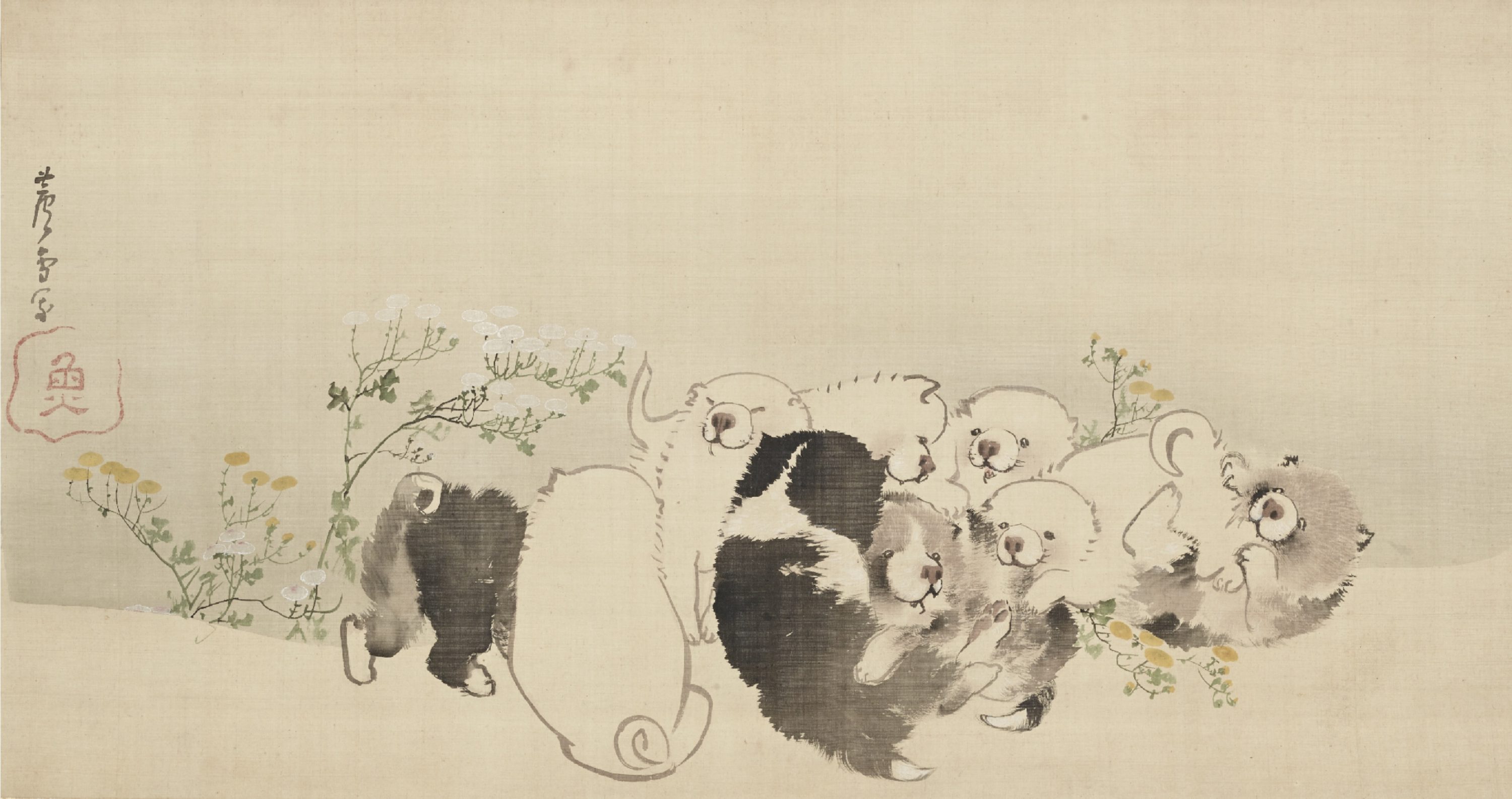 『南天狗子図』や『菊花子犬図』など思わず頬がゆるむ子犬の絵画だが、愛らしさの奥に禅の思想や命を慈しむ仏教のまなざしもひそんでおり味わい深い。一方で蘆雪は、「かわいい」と対極にある「覇気」でも知られる画家。串本・無量寺の竜と虎の襖絵をはじめとする迫力ある代表作から、風景画や人物画まで、幅広い魅力を一度に楽しめる。都内では64年(!)ぶりとなる蘆雪展。21世紀を生きる私たちの視点で再評価された作品を味わいに出かけたい。